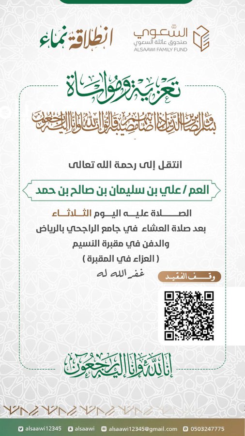 أنتقل إلى رحمة الله تعالى العم / علي بن سليمان بن صالح بن حمد